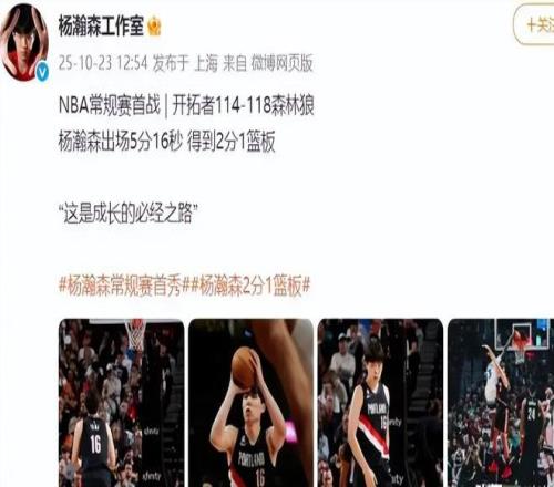 鲁中晨报:(刚刚,杨瀚森NBA常规赛首秀!拿到个人NBA生涯首分2025.10.23)