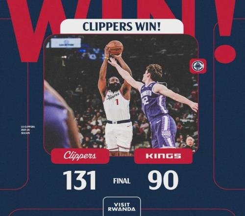 国王第三节31-27追回4分,但依然难阻败局。为了保险起见,第四节泰伦卢又让伦纳德打了5分钟,领先到39分才将其换下。全场结束,快船131-90狂胜国王,快船豪取5连胜,继续北伐!伦纳德19中11,砍下33分5板5助3断1帽!