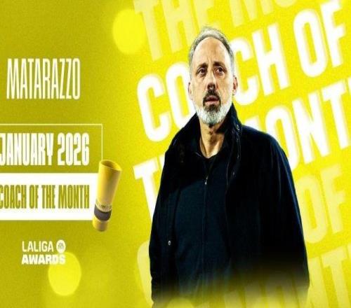 带领皇家社会4战斩获3胜1平,马塔拉佐当选西甲1月最佳教练